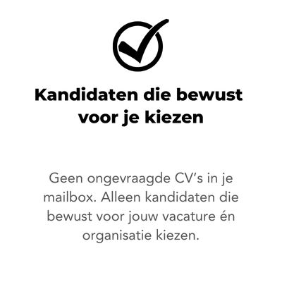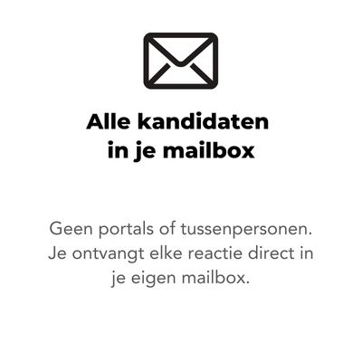 Alle kandidaten ontvang je direct in je eigen mailbox. Wij bemoeien ons niet met de selectie en je mag iedereen ook gewoon zelf aannemen.